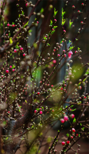 桃花催花的关键在于温度的把握,桃花落叶后,将其放在7℃左右的低温环境中,使花芽充分分化。春节前1个半月左右将这些桃花移入室内,先给以5至10℃的室温,以后逐渐提高温度至20℃至25℃。通过模拟冬去春来的气温变化,从而“唤醒”花朵,使其在春节进入盛花期。