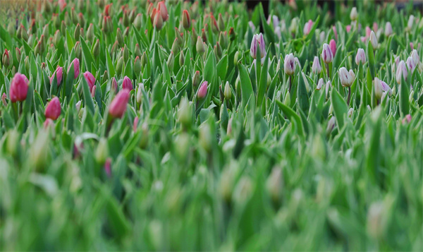 以郁金香为例,其种球需先经历一段低温处理(如放置于9℃左右环境)以促进生根和花芽分化,待其萌芽后,再转入18℃左右的温室中,通过综合调控光照、水分等条件,诱导花蕾发育,最终如期开放。