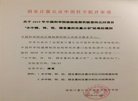 武汉植物园公共实验平台在2024年“水中锑的测定”能力验证中获满意结果