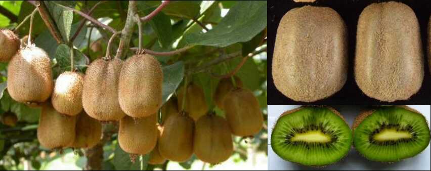 果实阔椭圆形或圆柱形,平均果重100克以上,果顶平,果蒂部微凹;果面黄褐色,茸毛中等密,棕褐色,少数有纵向缢痕。果肉翠绿色,汁液多,风味特浓,酸甜适中,具清香,果心较小,含可溶性固形物18%~26%、总糖13%、有机酸1.6%、维生素C 110~240毫克/100克鲜重;果实耐贮性强,室温下可贮藏40天。在武汉植物园种植,平均果重75~90克,果实极耐贮藏,硬果后熟需要35 天,软熟(硬度0.4 千克/平方厘米)果实含可溶性固形物19%、总糖13%、总酸1.4%、维生素C 131毫克/100克鲜重。
