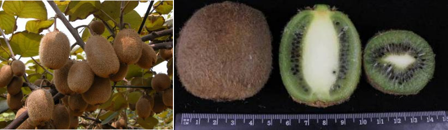 ‘川猕1号’结果状(左)和果实剖面(右)