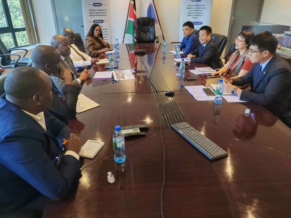 1月15日下午,中-非中心团队陪同驻肯使馆官员访问肯尼亚航天局(Kenya Space Agency, KSA),与局长Hillary Kipkosgey少将举行会谈。