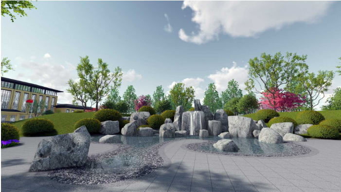 黄鹤楼卷烟包装印刷及辅材产业园项目一期工程景观绿化设计-水景图效果图