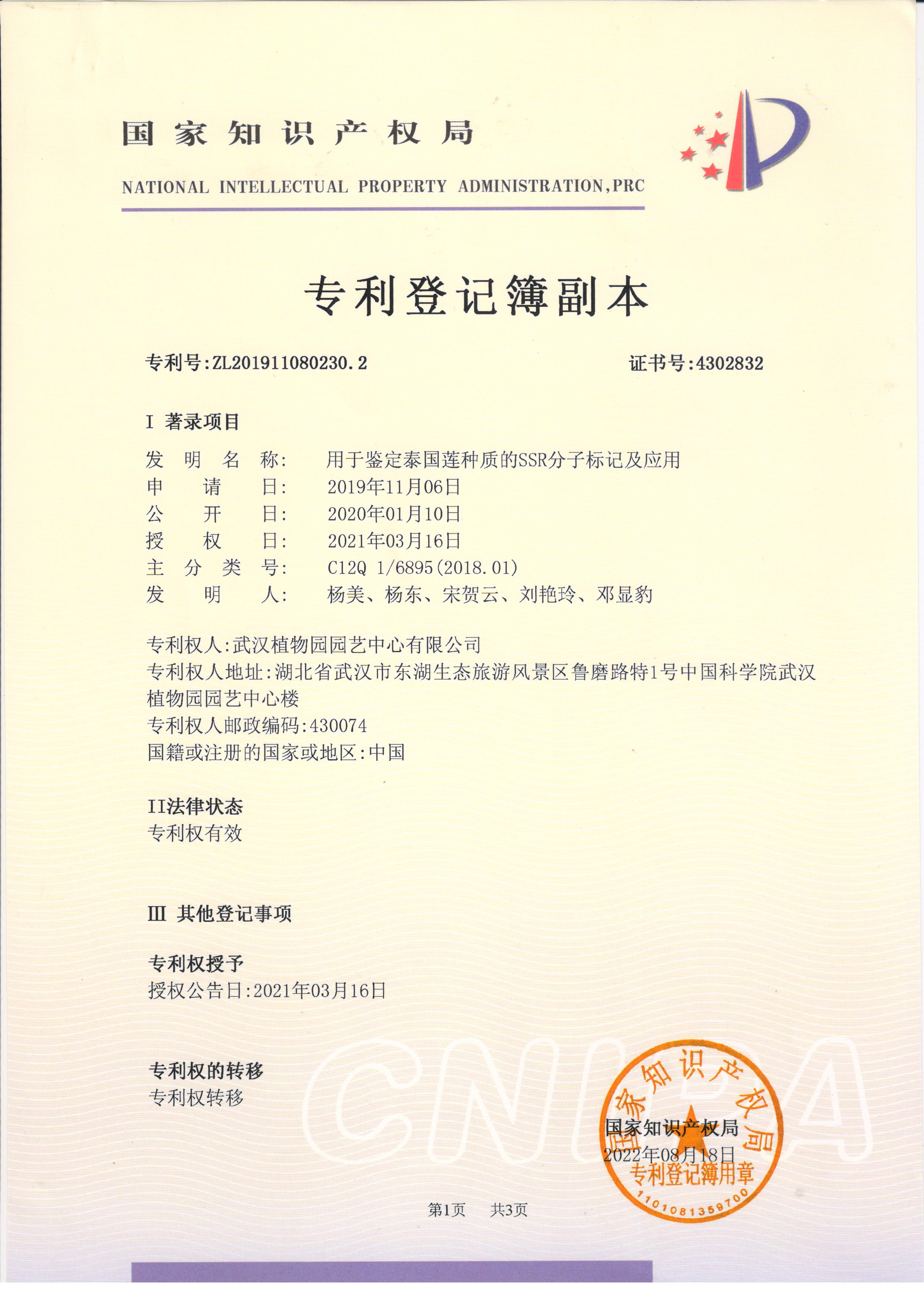 用于鉴定泰国莲种质的SSR分子标记及应用