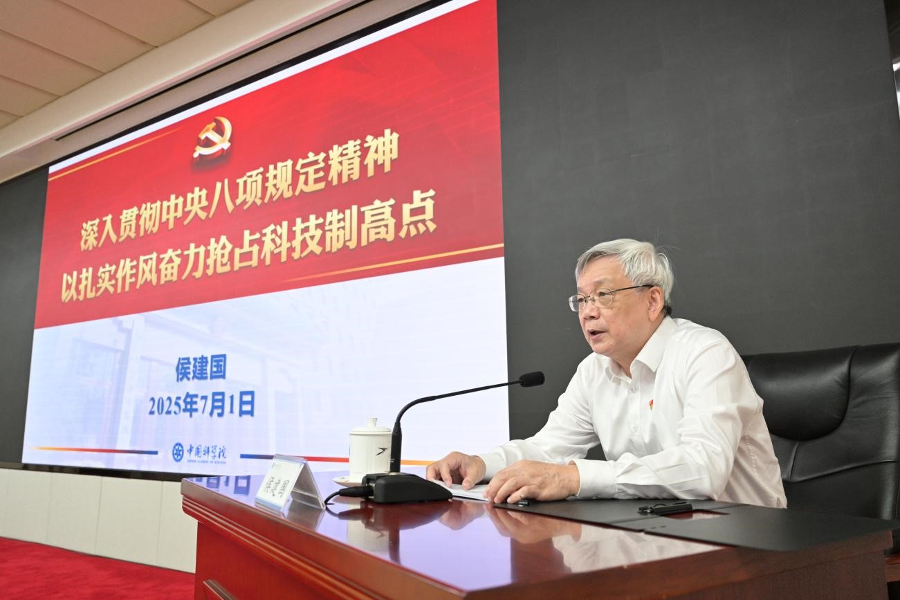 7月1日,在中国共产党成立104周年之际,中国科学院召开专题党课报告会。中国科学院院长、党组书记侯建国以《深入贯彻中央八项规定精神 以扎实作风奋力抢占科技制高点》为题作党课报告,副院长、党组副书记吴朝晖主持报告会。