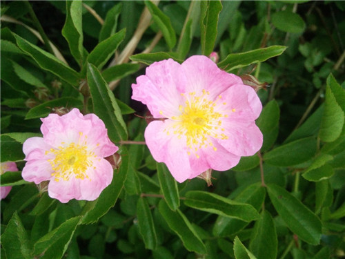 真正的玫瑰(Rosa rugosa)是蔷薇属桂味组内的一个种,原产我国华北以及日本和朝鲜。玫瑰花开一季,花香浓郁,鲜花可制芳香油,花瓣可以制馅饼、玫瑰酒、泡茶等,果实含丰富的维生素C。