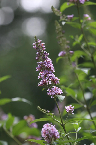 作为小灌木,大叶醉鱼草可与乔木、草本花卉共同构成错落有致的美丽图景。长长的枝条看起来自由舒展,柔软多姿,枝条的前端是由众多紫色小花组成的总状或圆锥状聚伞花序。