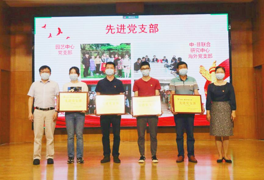 园党委委员、副主任王青锋宣读了《中共中国科学院武汉植物园委员会关于表彰2019-2020年度先进党支部、优秀共产党员、优秀党务工作者的决定》。 2019 年以来,武汉植物园基层党组织和广大共产党员、党务工作者弘扬“创新科技,服务国家,造福人民”的科技价值观,面对突如其来的新冠肺炎疫情,迎难而上、攻坚克难,把投身疫情防控一线作为践行初心、勇担使命的“主战场”,涌现出了一批先进党支部和优秀共产党员、优秀党务工作者。其中,4个先进党支部、30名优秀共产党员、10名优秀党务工作者受到园党委表彰。园领导班子成员和党委委员:张全发、尚纳新、王青锋、刘宏涛、梁琼、刘贵华分别为获奖集体及个人颁奖。