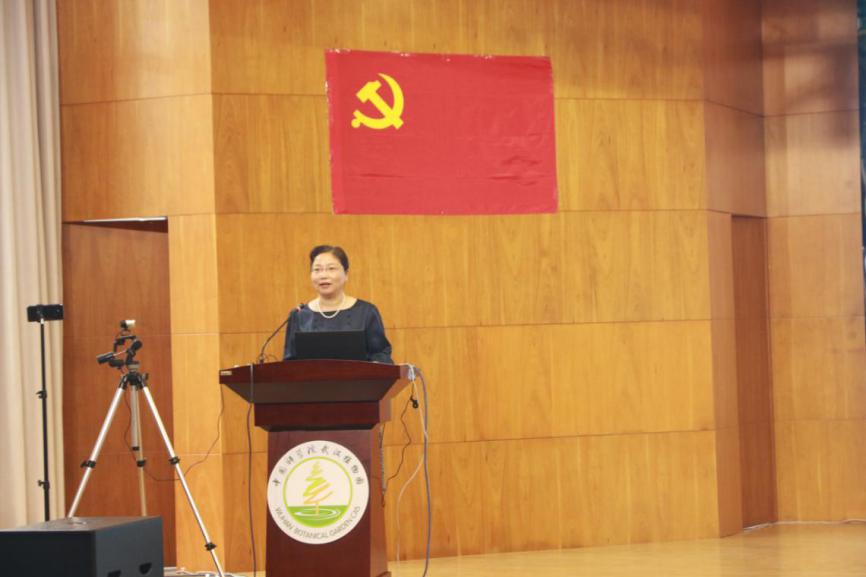 园党委副书记(主持工作)、副主任尚纳新作了“铸就利器国之担当”专题报告。讲述了人类历史上爆发的十次瘟疫,以及人与瘟疫抗争的历程;选取建国之后三次重大的疫病防治事件,阐明了中国共产党领导带领全国人民取得疫病防治的历史性成就。记录了抗击新冠病毒疫情中,中国的科技力量特别是中国科学院取得的重要科技攻关成果,发挥的科技支撑作用。她号召武汉植物园人,要认真贯彻落实院党组的决策部署,按照发挥国家战略科技力量骨干引领作用的要求,不忘初心,不负韶华,共克时艰,主动作为,弘扬新时代科学家精神,肩负起国家战略科技力量的使命担当。