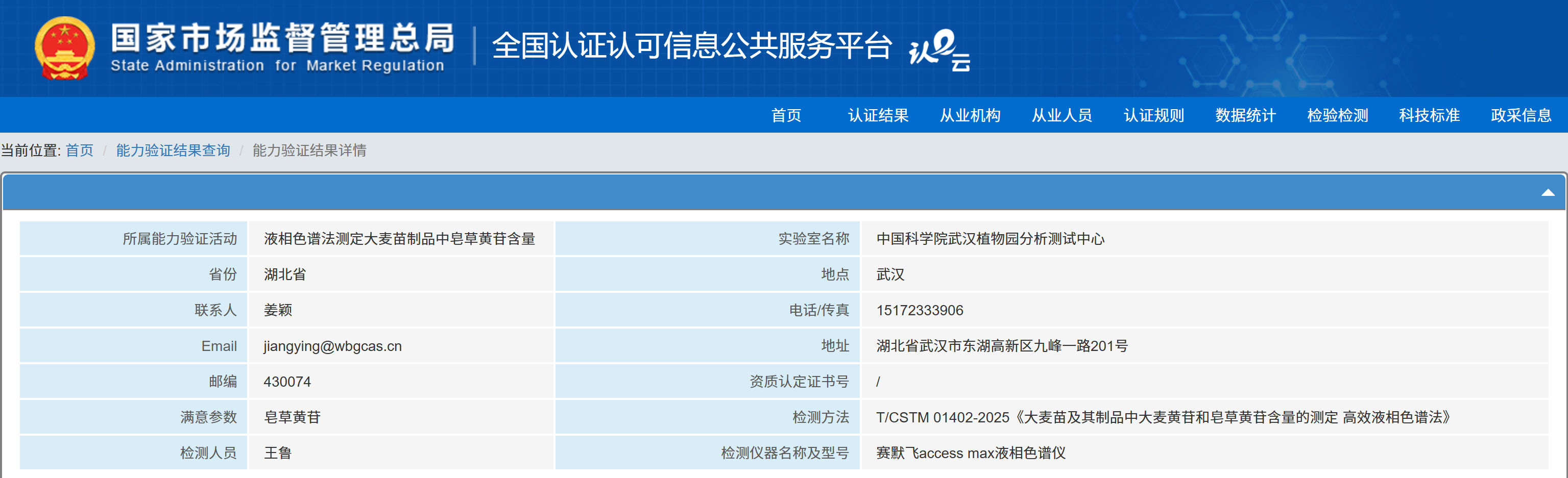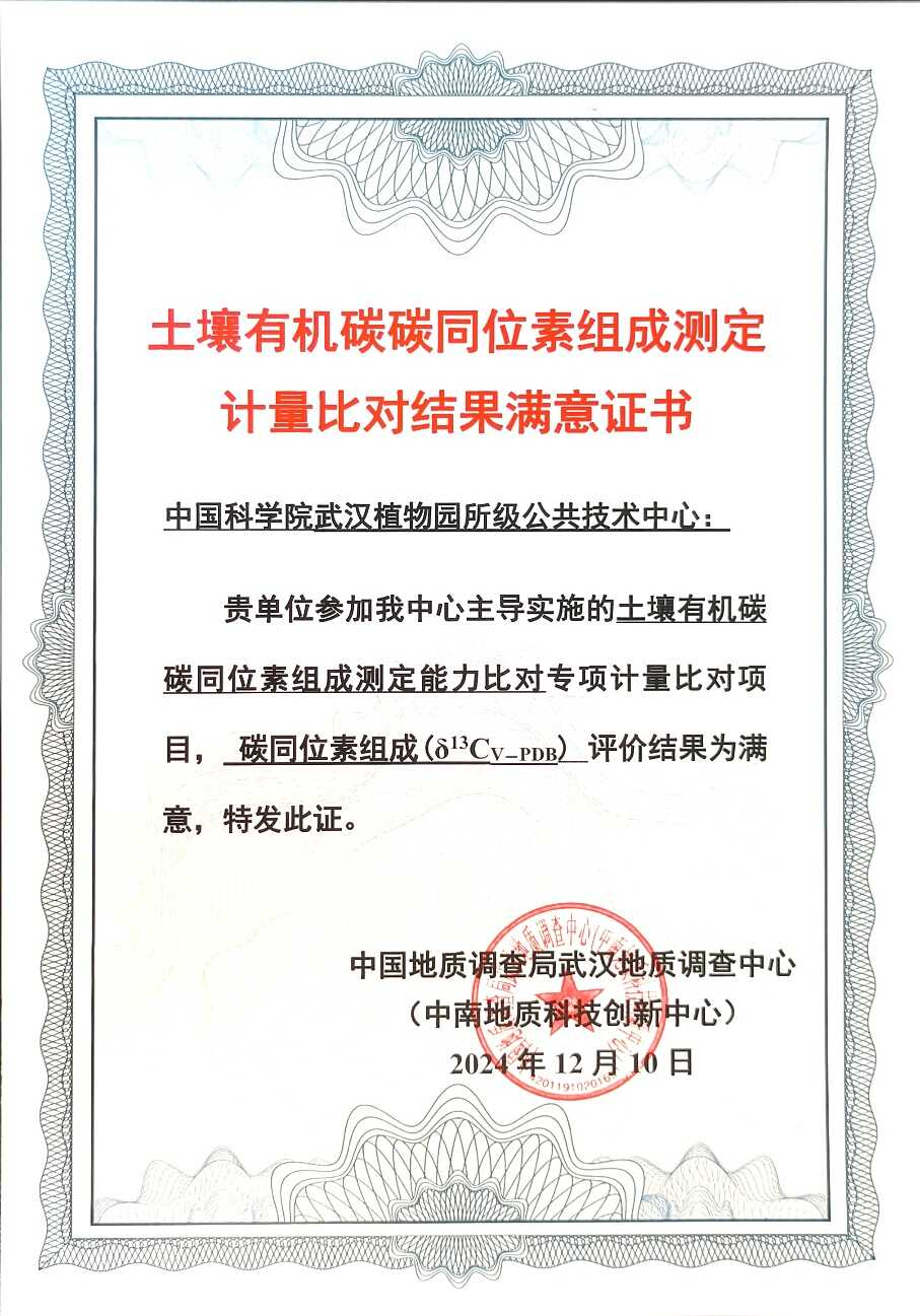 武汉植物园公共实验平台在2024年“水中锑的测定”能力验证中获满意结果 [2025.05.10]