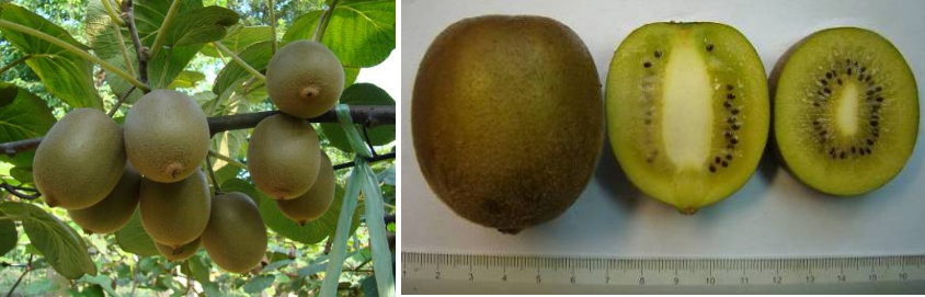 ‘鄂猕猴桃2’结果状(左)和果实剖面(右)