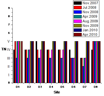 系统生态学学科组谭香副研究员在张全发研究员的支持下,从2007年至2010年,对丹江口水库的主要污染源如营养盐、重金属及微量元素等13个水质指标进行了为期三年的监测,并基于多级关联理论对水库的水质进行了综合评价。取得的主要研究结果为:水库主要污染物是总氮(Total nitrogen)、铅(Pb)和砷(As),平均浓度分别达到4.6 mg/L、210.4 µg/L 和14.1 µg/L。总氮、氨氮(NH4+-N)、铬(Cr)和铅在3年的研究时期内有明显上升趋势。分别利用13个单因子评价水库的各采样点,其结果是变动的,介于I 到V 级不等。而基于灰关联数学理论,对丹江口水库的水质进行了综合评价。本研究证明了这种基于灰色理论(多级管理理论)的综合评价方法能够有效的评价水质,并能使公众更简单明了快速的了解目标水库的水质状况。