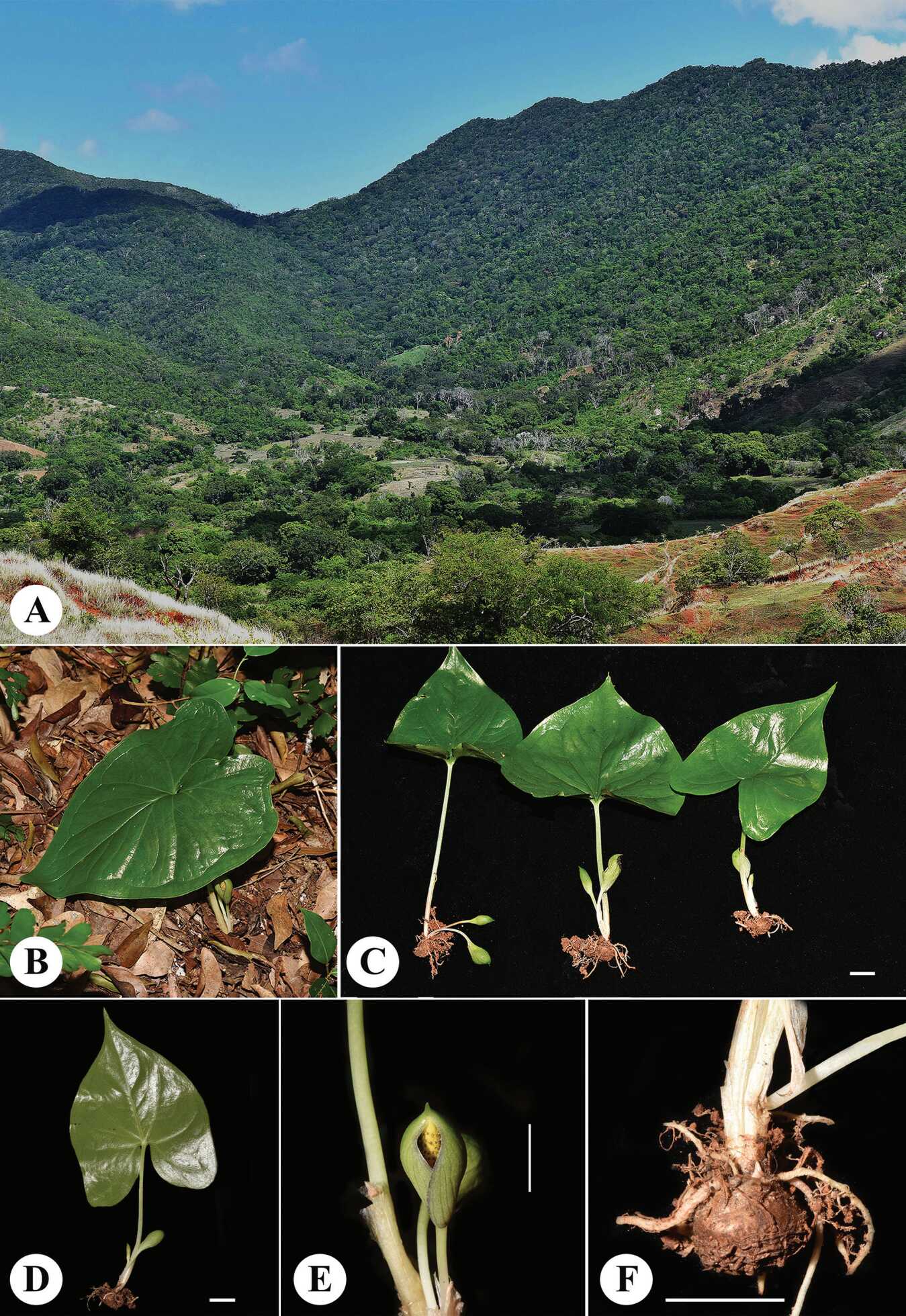 我园科研团队将该新种命名为中-非中心灰岩芋(Carlephyton sajoreciae N.Wei,S.W.Wang & Q.F.Wang)。种加词“sajoreciae”来源于中国科学院中-非联合研究中心(SAJOREC,Sino-Africa Joint Research Center,Chinese Academy of Sciences)的英文缩写,旨在致敬该中心在过去十多年间为推动非洲生物多样性保护所作出的突出贡献。这一命名不仅体现了国际科研合作的成果,也彰显了我国科研工作者在全球生物多样性研究中的责任和担当。值得注意的是,该新种是灰岩芋属中首个被报道生长在林下的地生物种,而同属其他物种均生长于岩石上。该新种独特的生境偏好,暗示灰岩芋属内可能存在不同的适应性进化路线,为后续的生物地理学研究提供了新方向。