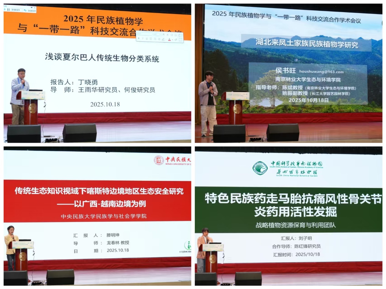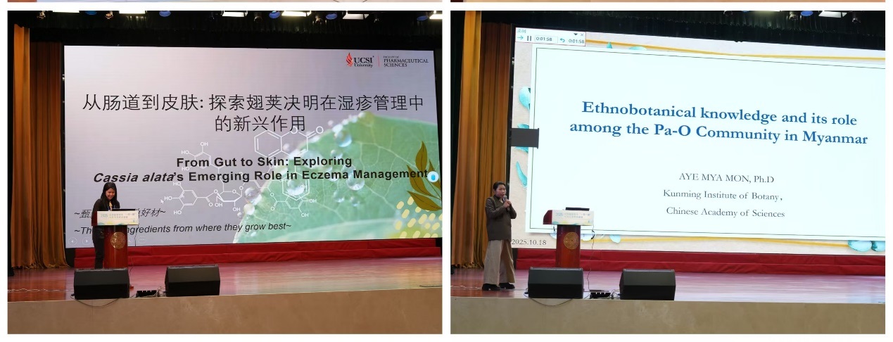 本次会议吸引了众多“一带一路”沿线国家专家的深度参与,国际化学术交流成为一大亮点。 来自泰国清迈大学的Angkhana Inta教授分享了泰国与印度之间的跨文化民族植物学比较研究;尼泊尔特里布文大学的Yadav Uprety博士系统综述了尼泊尔民族植物学的发展趋势;泰国Kanchit Thammasiri博士与马来西亚UCSI大学的Chew Yik Ling博士则分别就药用植物保护与植物在健康管理中的新应用发表了见解。此外,来自马达加斯加和缅甸的青年学者们也报告了他们在本土社区传统植物知识挖掘与保护方面的最新工作,充分体现了“一带一路”科技交流的广度与深度。