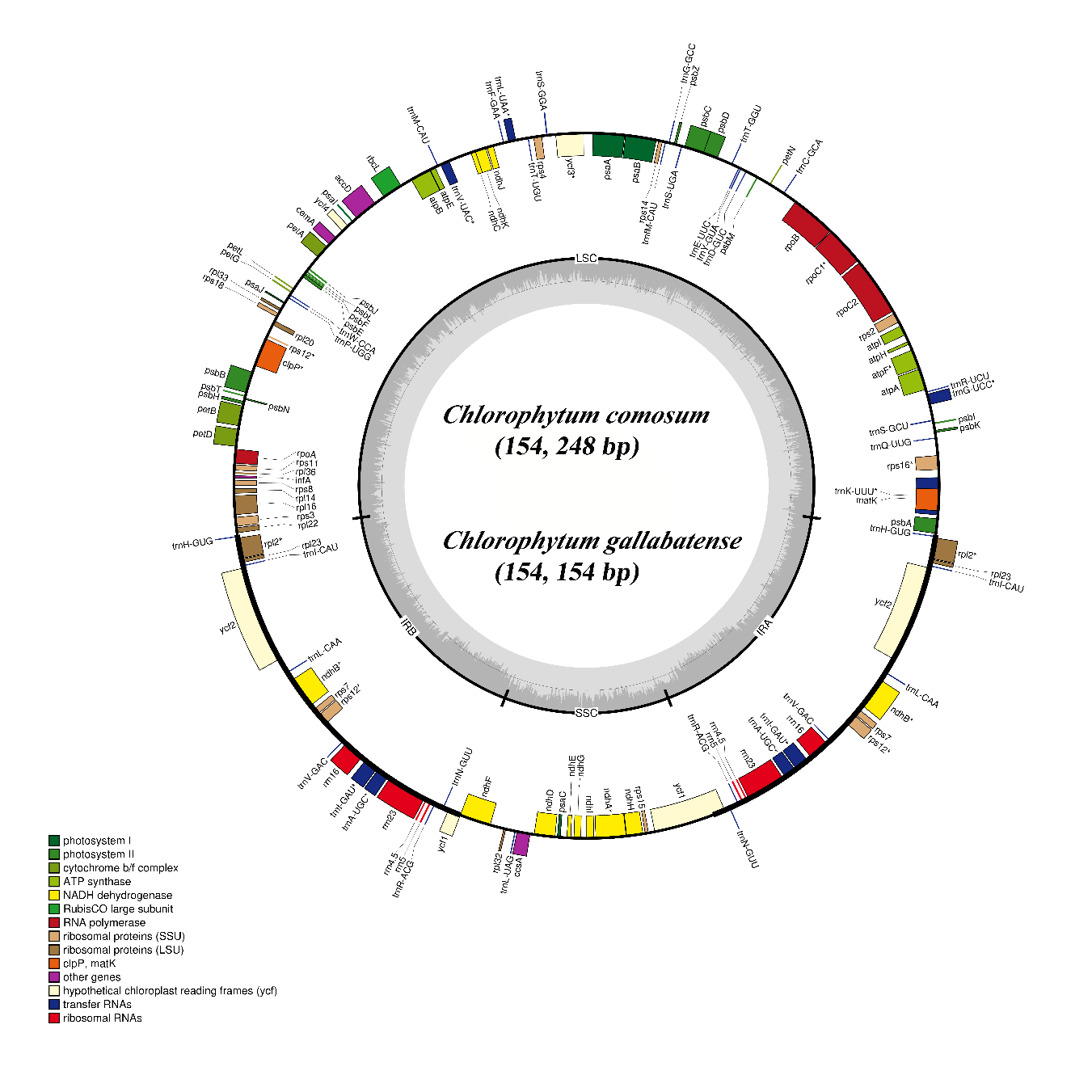 图1 Chlorophytum comosum和Chlorophytum gallabatense的叶绿体基因组图谱