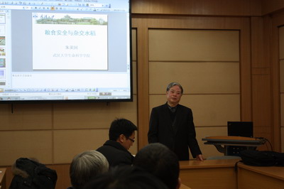 朱英国介绍了世界及我国粮食安全现状,回顾了杂交水稻的发展历史,并总结了其优势。他指出杂交水稻在过去为粮食安全做出了极大贡献,当前仍是水稻增产的主要方式。他从如何利用籼粳杂种优势、加强种质创新、实现技术途径新突破等三方面分析了杂交水稻发展中亟待解决的关键性科学问题,并从基因组学、转录组学、蛋白组学及代谢组学四个角度综述了水稻现代生物学技术的研究进展,从杂交稻的基础研究、育种实践和产业化发展三方面介绍了现代生物技术与杂交水稻的发展,并分享了多年来在实现杂交稻产业化发展中的体会。最后,朱英国就杂交水稻未来的发展方向等问题回答了现场提问,并发表了对转基因水稻研究的和转基因食品安全问题的看法,及对杂交小麦优势利用的见解。