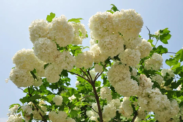 谈到荚蒾,很多人感觉不熟悉。但提起琼花,人们就不陌生了。没错,洁白美丽的琼花就是一种常见的荚蒾属植物。传说隋炀帝特爱此花。宋代诗人曾留下“谁移琪树下仙乡?二月轻冰八月霜”的咏琼花名句。琼花还有“天下无双独此花”的美誉。