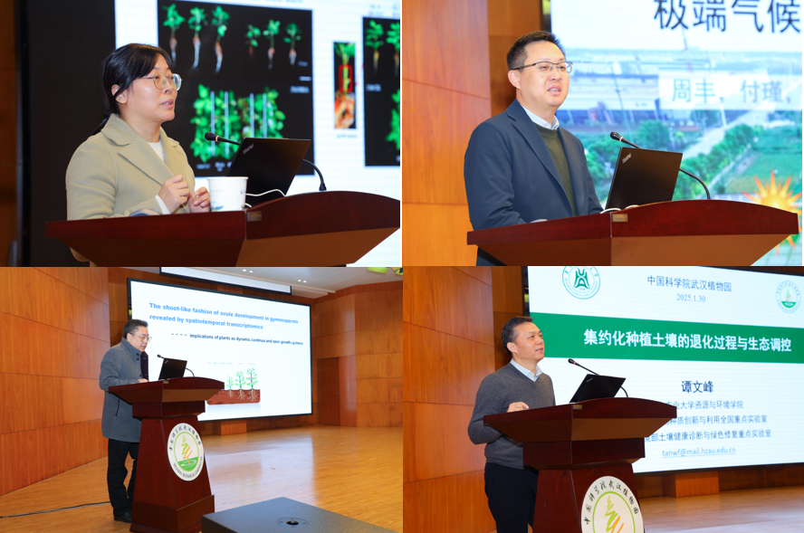 1 月 29 日至30 日,2025 年度武汉植物园学术年会在光谷园区学术报告厅举行。武汉植物园主任王青锋、副主任黄伟、纪委书记贺锋出席会议,来自中国科学院植物研究所、北京大学、复旦大学、西北农林科技大学、华中农业大学等知名高校及科研机构的专家学者,与园内科研人员、研究生代表共 300 余人齐聚一堂,以学术交流为纽带,深耕植物与生态科学前沿领域,共绘科技创新发展蓝图。会议由武汉植物园科研处负责人、研究中心主任及研究员代表分时段主持。