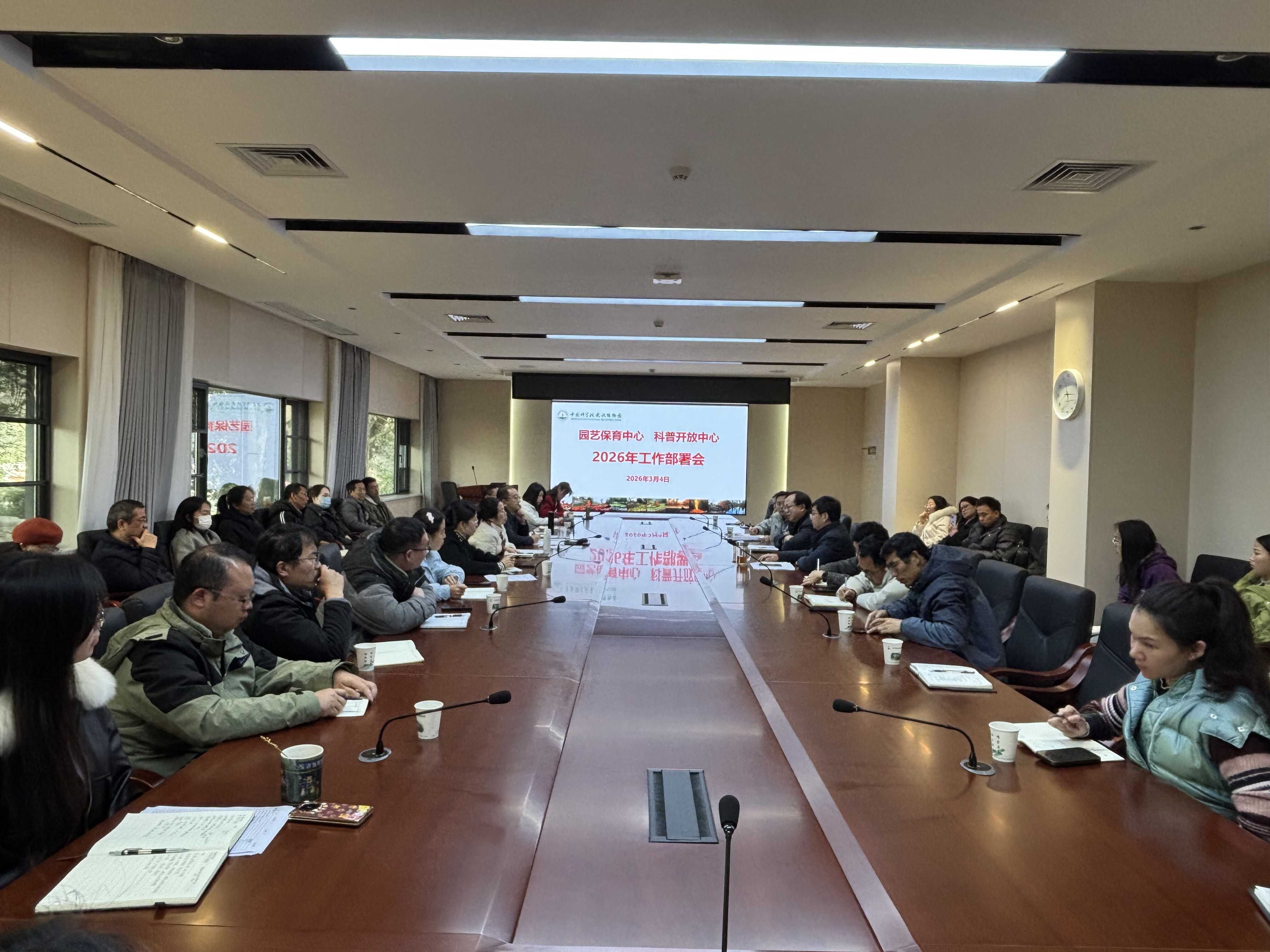 3月4日上午,武汉植物园组织召开“园艺保育中心、科普开放中心2026年工作部署会”,围绕新一年度重点任务进行系统部署,推动落实“十五五”发展规划相关目标任务。会议由园副主任刘宏涛主持,园主任王青锋出席会议并作动员部署,两个中心全体人员参会。