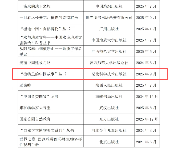 4月23日,第31个世界读书日当天,由自然资源部宣传教育中心、中国林学会组织评选的2026年度“生态文明好书”正式揭晓,共有40种图书上榜。由中国科学院武汉植物园刘宏涛、张莉俊主编的《植物里的中国故事》丛书荣列其中。